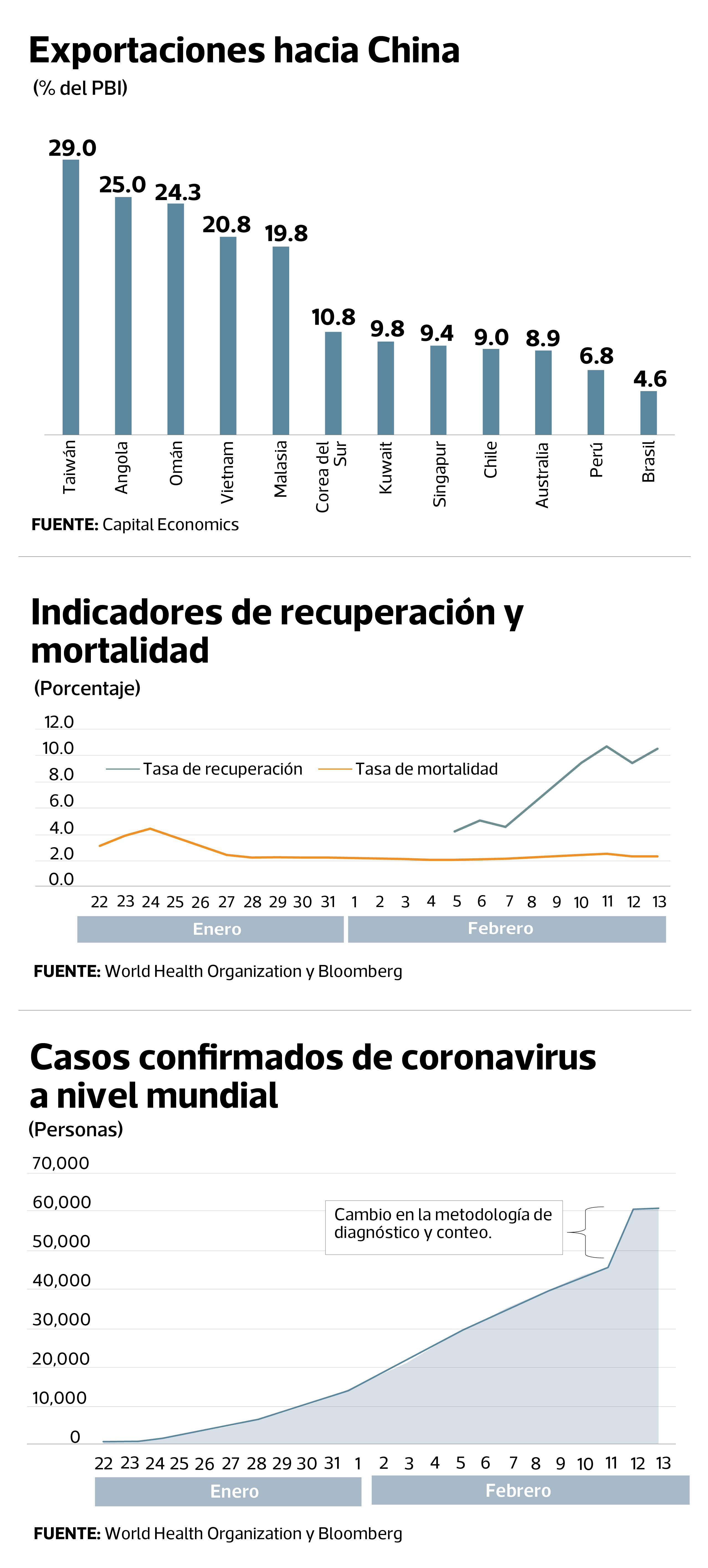 El impacto negativo también se verá reflejado en los países donde China representa una demanda relevante para sus bienes y servicios. En efecto, EE.UU. y Europa venden buena parte de sus exportaciones al gigante asiático, además de recibir una considerable cantidad de turistas chinos. Estos rubros deberían verse reducidos en el corto plazo. Sin embargo, son los países emergentes probablemente los que están más vulnerables, pues sus exportaciones tienden a estar menos diversificadas, y en algunos casos, concentradas en China.