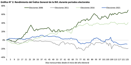 En 2011 ganó Ollanta Humala en segunda vuelta frente a Keiko Fujimori, la candidata promercado. Humala, que inició la campaña con un discurso chavista, no lideraba las encuestas en diciembre de 2010. Los líderes eran Castañeda Lossio y Toledo, ambos relativamente promercado. Sin embargo, en febrero-marzo, Humala fue subiendo poco a poco, llegando a la segunda ronda. Luego, para vencer a Keiko Fujimori, moderó su discurso y buscó calmar a los inversionistas tras contar con el apoyo de Mario Vargas Llosa. Tras ganar por un margen muy estrecho, el índice general de la BVL colapsó 12.4 % en un día. En los primeros seis meses de 2011, el IGBVL cayó 19.2 %.