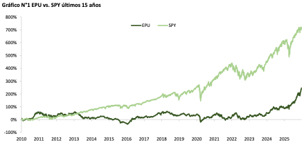 ¿Pero ha sido el mercado peruano una buena alternativa de inversión a largo plazo? En los últimos quince años, el EPU, que cotiza en dólares, ha rendido 8.1 % promedio anual (esto incluye el espectacular 2025). En ese mismo período, el SPY ha tenido un retorno de 14.1 % promedio anual.