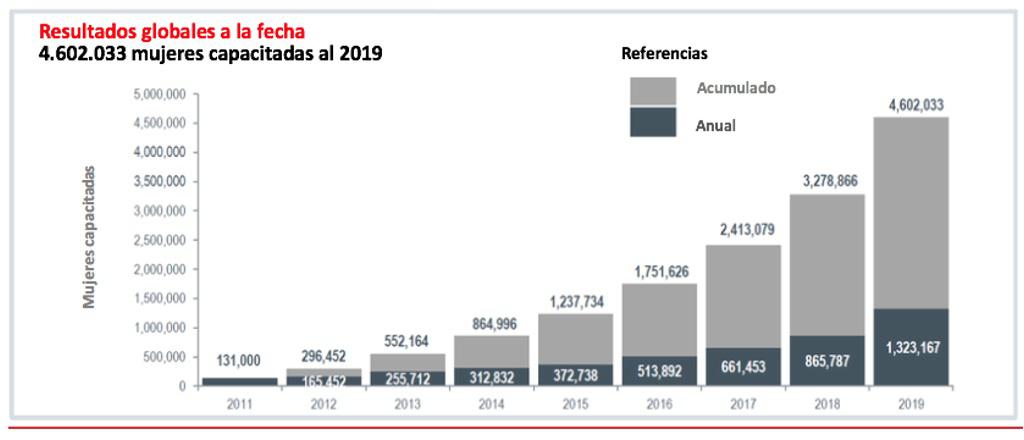 A nivel global, colabora con TechnoServe, la Fundación Bill & Melinda Gates, la Corporación Financiera Internacional, Banco Interamericano de Desarrollo y cientos de organizaciones de todo el mundo para generar un impacto positivo y relevante a nivel local en las comunidades y ayudar a alcanzar nuestra meta. Ya son más de 4,6 millones de mujeres en todo el planeta que han adquirido herramientas necesarias para su desarrollo.