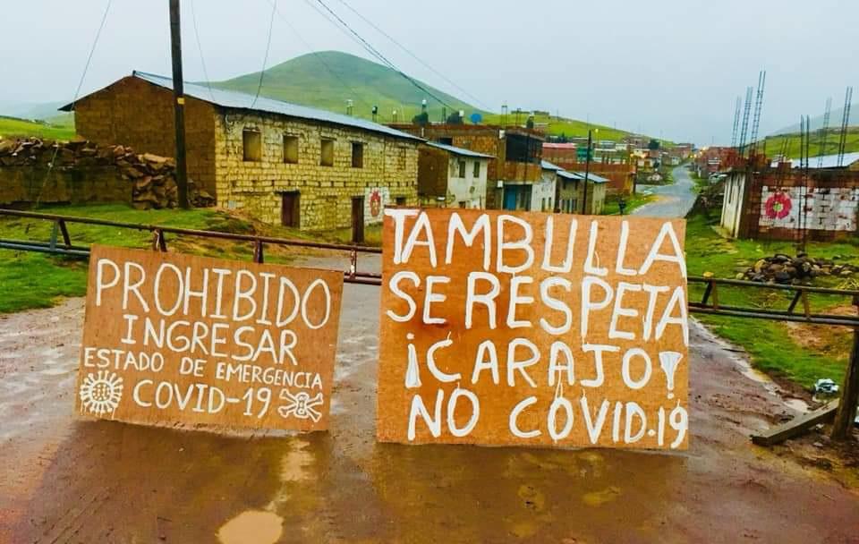 Sin embargo, fue en Tambulla, distrito de Challhuahuacho (Cotabambas), donde sus habitantes colocaron una tranquera con dos grandes letreros que decían. “Prohibido ingresar, estado de emergencia Covid 19” y “Tambulla se respeta ¡Car#.%! No Covid-19”.