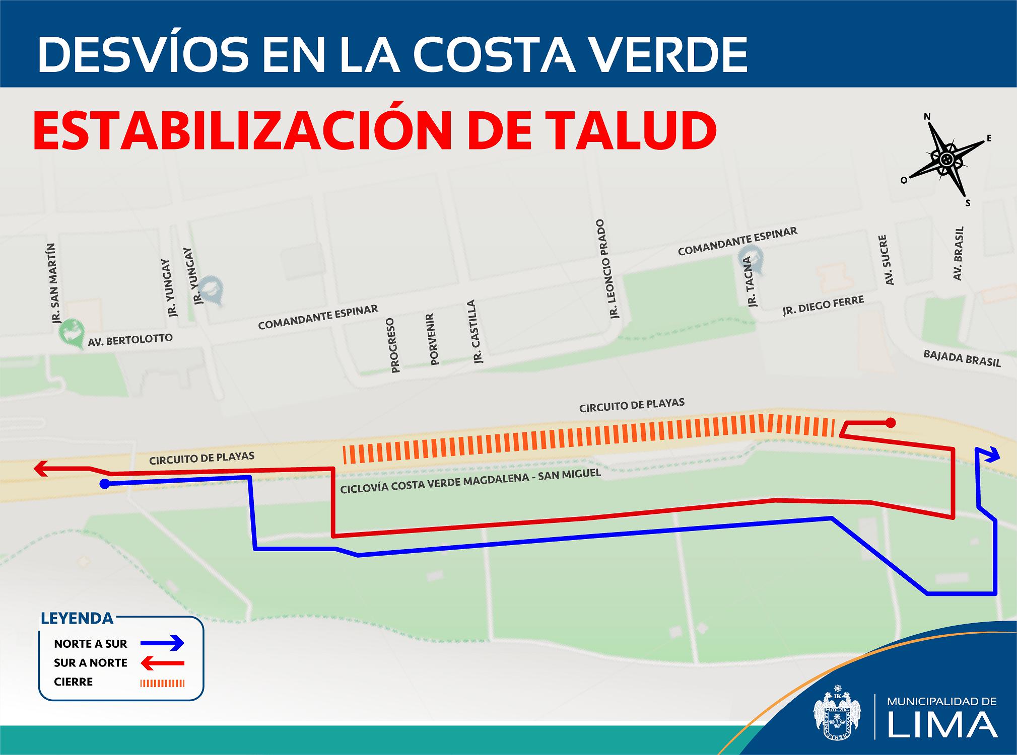 La Municipalidad de Lima informó que inició trabajos de estabilización de taludes en el acantilado del Malecón Castagnola con la finalidad de evitar futuros derrumbes en la zona. Esto tras el deslizamiento ocurrido en la Costa Verde el pasado 8 de agosto.