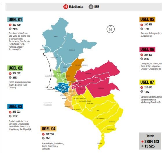 El informe de control señala que de acuerdo a información obtenida de la plataforma Nexus de la Dirección Técnico Normativa de Docentes (DITEN) del Minedu, para este año en las referidas UGEL de Lima Metropolitana solo cuentan con 324 psicólogos, de los cuales 171 se dedican a servicios administrativos y 153 a trabajar en las instituciones educativas, para atender a más de 2 millones 4 mil estudiantes, distribuidos en 13 525 colegios.