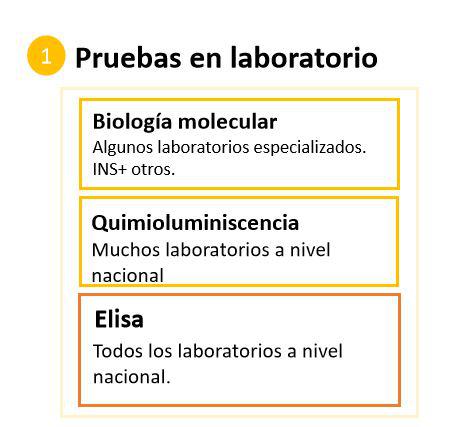 Para poder implementar estas pruebas en los laboratorios clínicos del sector público, el Gobierno necesitaría importar los reactivos y disponer su uso bajo la técnica de Elisa. Dichos reactivos pueden ser importados de Alemania, Francia, China, los Estados Unidos o Inglaterra, sin embargo, hay una gran competencia por ellos en el mercado internacional.