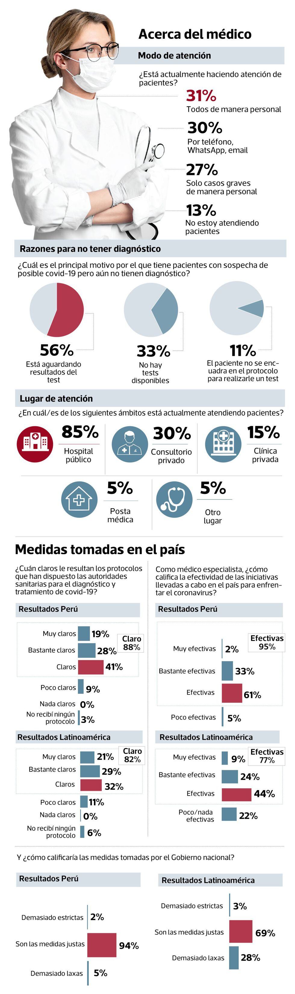 Para el 88% de los médicos peruanos, los protocolos que han fijado las autoridades están claros, un porcentaje que está por encima de la región, donde llega a 82%.