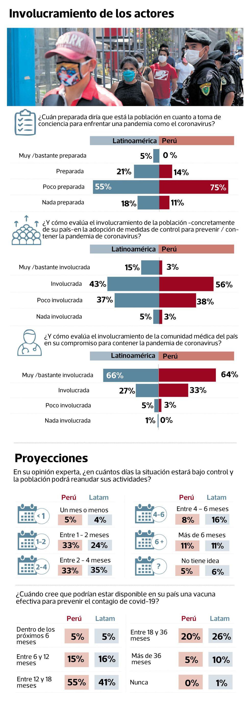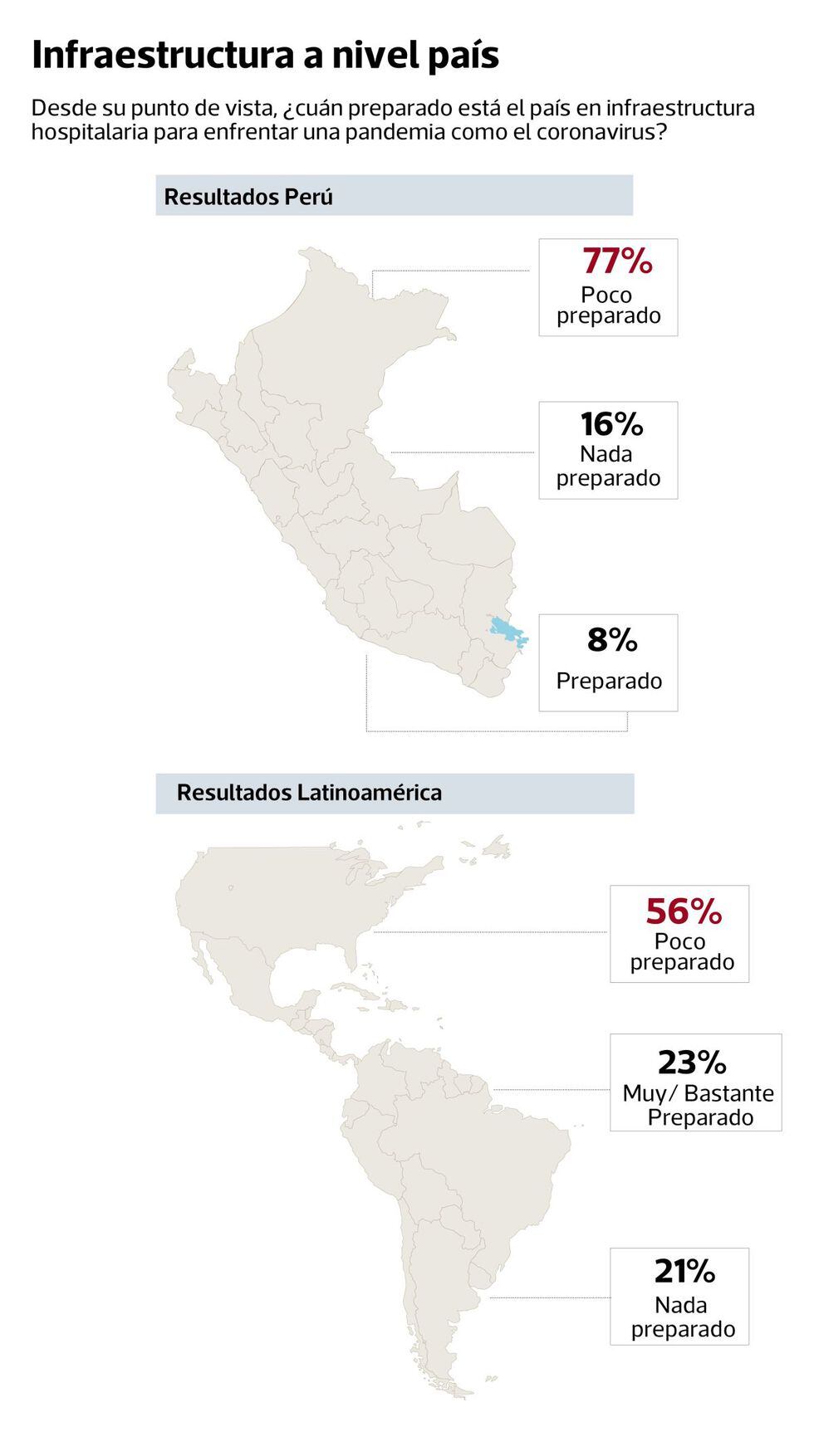 El sondeo realizado por Datum y Fine Research, además, recoge la opinión de médicos de otros 11 países de Latinoamérica. Es así que en la región esta percepción de poca o nada de preparación de la población se reduce a 73%.