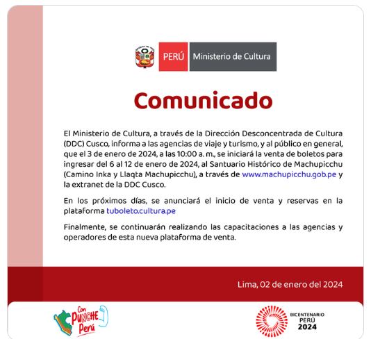 En la mañana del miércoles 31 de enero, los manifestantes de Machu Picchu informaron que se levantó el paro indefinido que mantenían desde el 25 de enero, tras conocerse la finalización anticipada del contrato con Joinnus para la venta de entradas a la Ciudadela Inca.