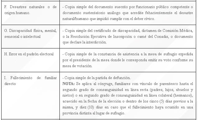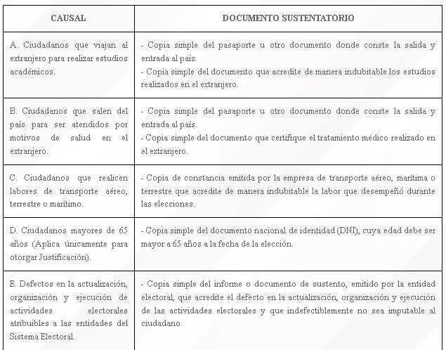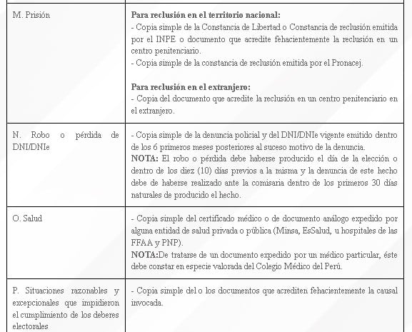 Los requisitos para presentar la dispensa son la copia de DNI/DNIe (en caso de pérdida o robo de DNI), copias de documentos que sustenten la causal por la cual no acudió a votar, conforme la tabla general de causales que aplican en el otorgamiento de la dispensa, que puede consultar en este enlace.