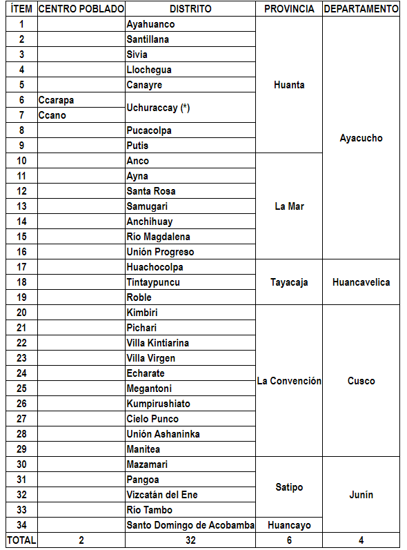 Asimismo, se dispone que las Fuerzas Armadas asuman el control del orden interno en los distritos y centros poblados en cuestión.