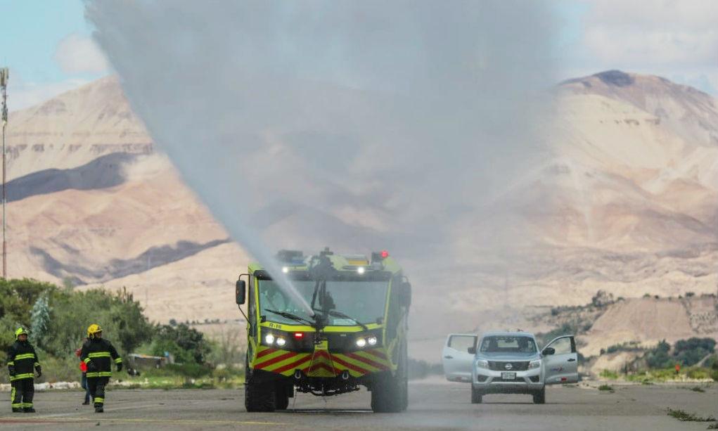 Además, tiene un camión contraincendios de alta tecnología. El vehículo posee una cámara infrarroja que permite la visibilidad en las zonas donde hay humo. La unidad está diseñada para operar en superficies pavimentadas y terrenos