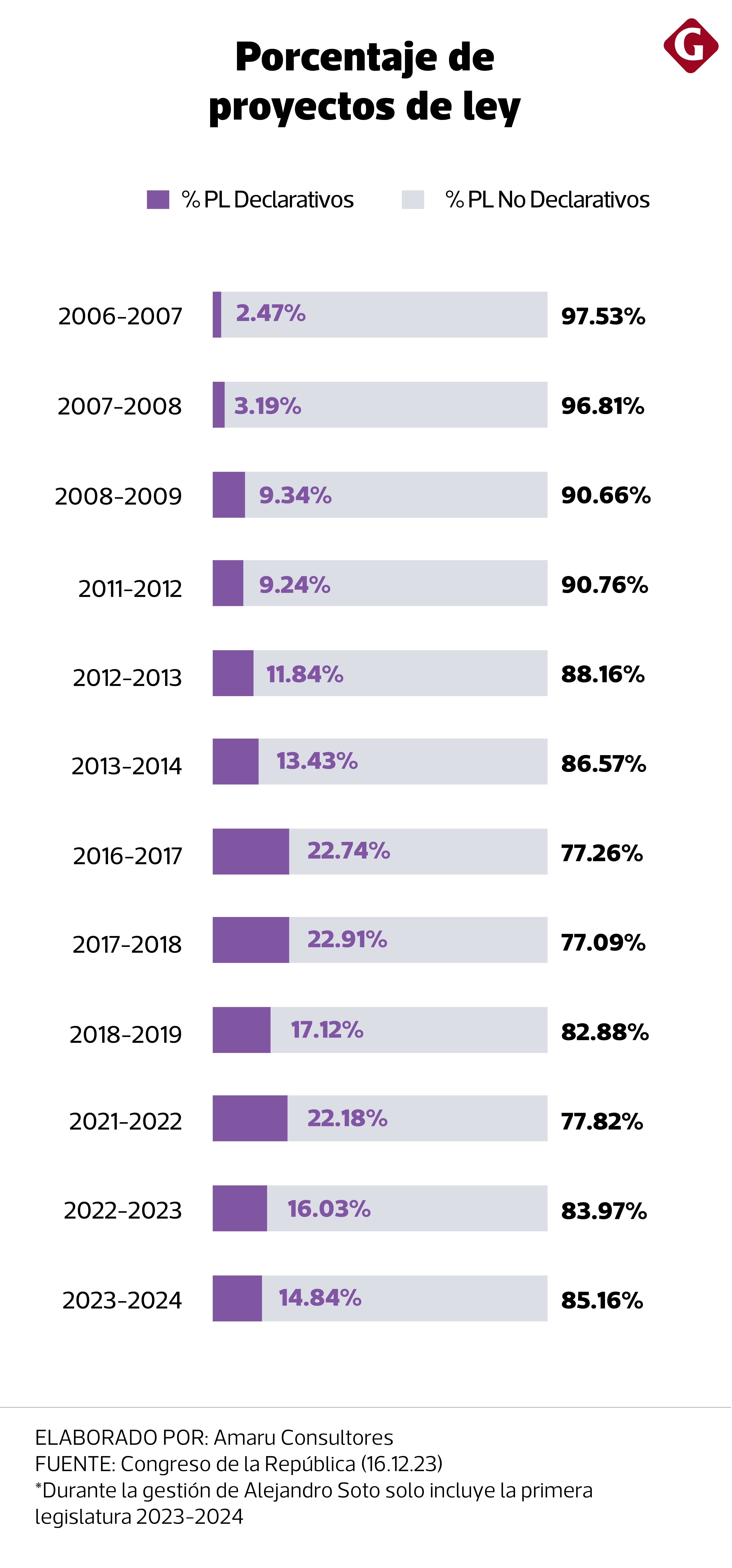 LEA TAMBIÉN: Productividad de legisladores y bancadas: ¿cuántos proyectos son declarativos?