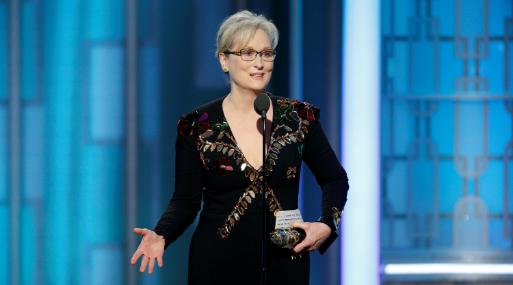 En un breve discurso al aceptar el premio Cecil B. DeMille a su trayectoria que le entregó la Asociación de la Prensa Extranjera de Hollywood, Streep, considerada una de las mejores actrices del mundo y ganadora de ocho Globos de Oro, recordó una "actuación" que la marcó este año.