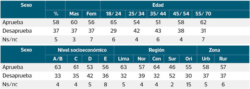 El mayor respaldo es del sector A/B con 74.8% y del C con 58.1%.