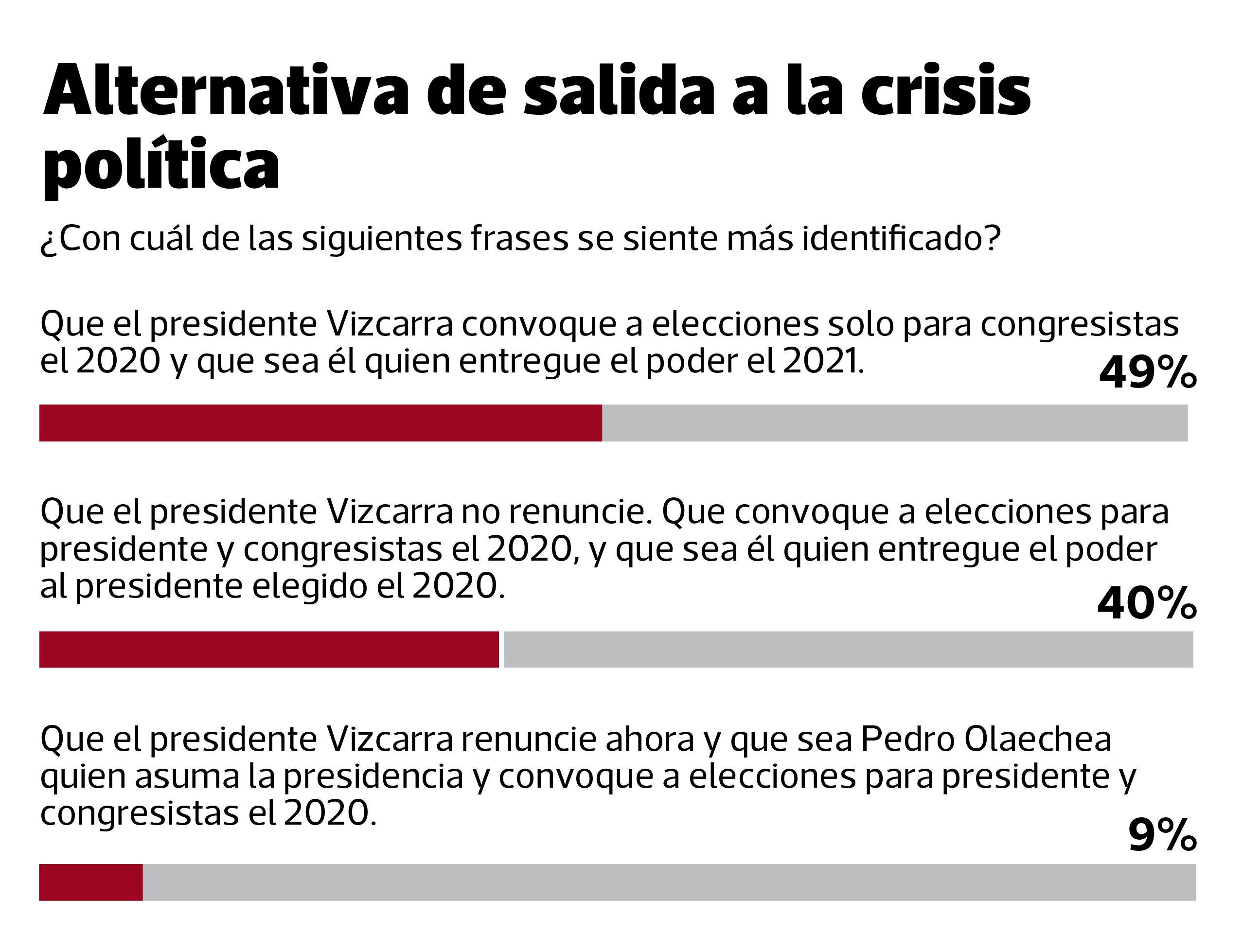En setiembre esta era de 52%, ocho puntos menos que en agosto, cuando llegó a 60%, luego de que planteara el adelanto de elecciones, que fue rechazado por el Congreso, lo que extremó la crisis que ya se vivía.