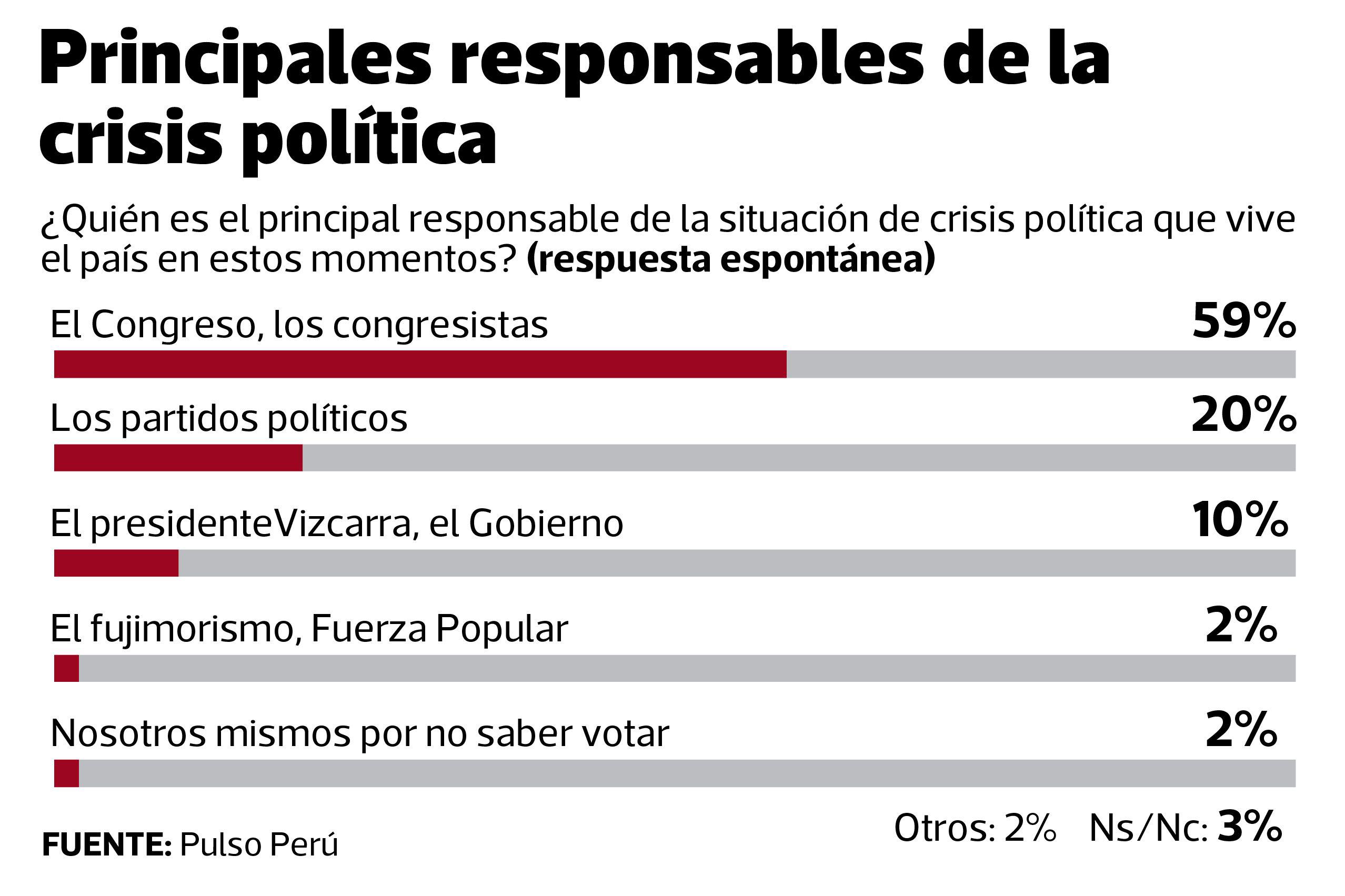 Para el 59%, el congreso fue el principal responsable de la crisis. En el sector E esta sensación llega a 61%.
