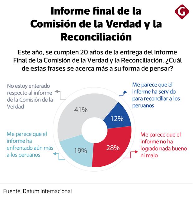 Esta postura es compartida por el 73% en el centro y sur del Perú, así como por el 68% en Lima. También así lo cree el 73% en el segmento A/B y el 69% en el C.