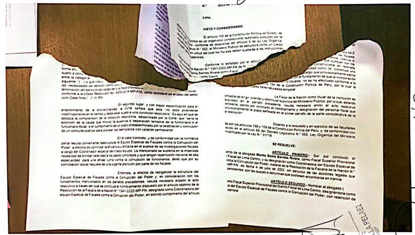 Al ser reconstruido, uno de los documentos se trataría del proyecto de resolución que acordó el cese de la fiscal Marita Barreto como coordinadora del EFICCOP.