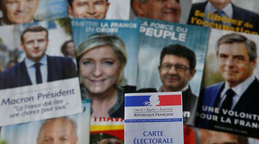 El centrista Emmanuel Macron y la líder de extrema derecha Marine Le Pen encabezaban la intención de voto en los últimos sondeos publicados el viernes, pero el conservador François Fillon y el izquierdista Jean-Luc Mélenchon les pisaban los talones.