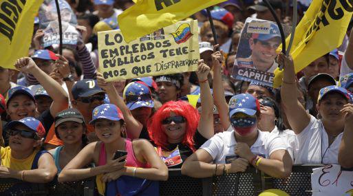 Escenario electoralSin embargo, a pesar del optimismo del gobernador de 40 años, la mayoría de las encuestas lo colocan, al menos, 10 puntos por debajo de Maduro.