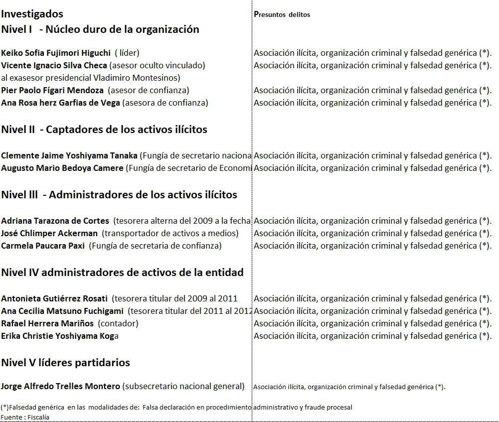 Según dicho requerimiento, al que tuvo acceso Gestión, a Fujimori Higuchi se le imputa el delito de lavado de activos, obstrucción de la justicia, asociación ilícita para delinquir, falsedad genérica, fraude procesal y falsa declaración en proceso administrativo.