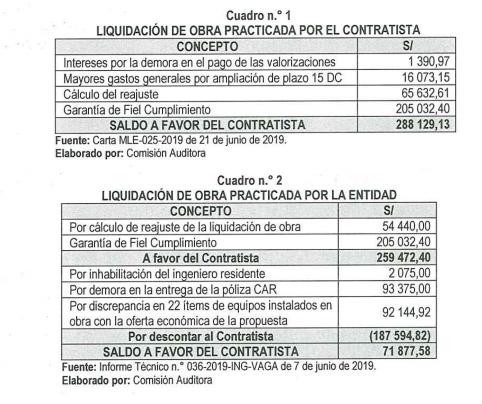 A pesar de lo sucedido, la liquidación de obra, tras los balances hechos dentro del despacho presidencial, arrojó que el Estado debía pagar a MLE Contratistas Generales SA un monto aproximado de S/ 72 mil. Sin embargo, la empresa reclamaba un monto de S/ 288 mil. Ante estas discrepancias y ante la posibilidad de alcanzar un acuerdo, la empresa demandó al Despacho Presidencial a un arbitraje en la Cámara de Comercio de Lima, señala el documento.