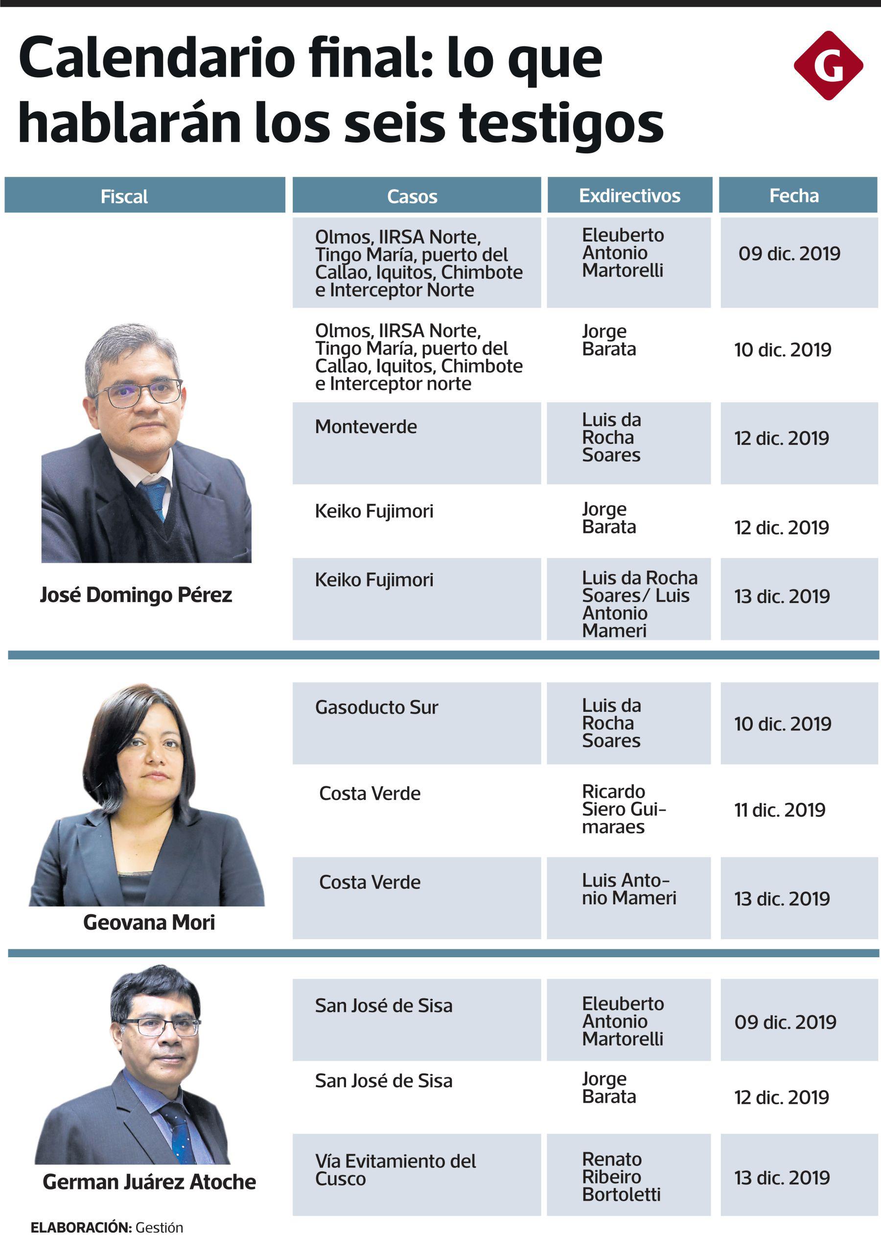 Otras fuentes vinculadas al proceso señalaron que el fiscal José Pérez interrogará a Jorge Barata, Luiz Antonio Mameri y Luiz Eduardo da Rocha Soares sobre los aportes a las campañas de Keiko Fujimori en 2011 y 2016.