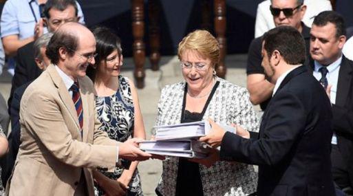 La presidenta de Chile, Michelle Bachelet, recibió esta mañana las bases ciudadanas del proceso constituyente, documento que sintetiza los resultados de los encuentros locales autoconvocados y cabildos provinciales y regionales.