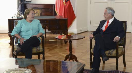 Santiago (Reuters).- La presidenta electa de Chile Michelle Bachelet se reunió con el mandatario Sebastián Piñera para analizar los alcances que tendrá el fallo de la Corte Internacional de Justicia a finales de enero sobre un diferendo marítimo con Perú.