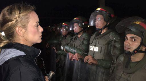"Daremos la cara ante el responsable de la represión. El enemigo no somos nosotros, el enemigo está en Miraflores (palacio presidencial), que tiene a los venezolanos pasando hambre y ordena reprimir a quienes están marchando en paz", afirmó Lilian Tintori, esposa del encarcelado líder opositor Leopoldo López.
