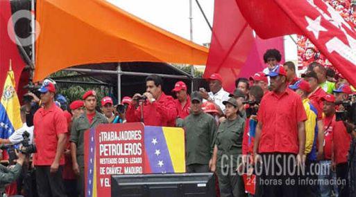 Dio un discurso ante los trabajadores de la petrolera estatal PDVSA, que salieron a marchar para demostrarle su apoyo, en paralelo a la manifestación de los civiles, estudiantes y grupos políticos que están en contra del gobierno de Maduro.