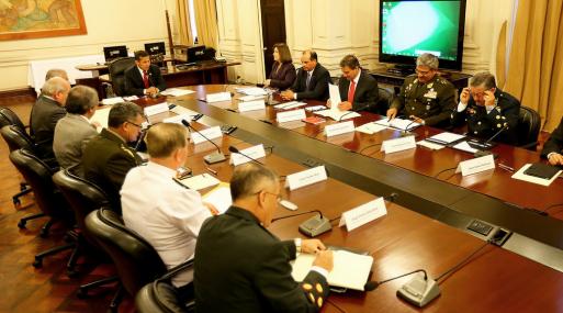El presidente de la República, Ollanta Humala, encabezó esta tarde una reunión del Consejo de Seguridad Nacional, en el marco de las reuniones que el Gobierno realiza con representantes de diversos sectores para informar alcances del trabajo del Ejecutivo ante el próximo fallo que emitirá la Corte de La Haya por el diferendo de límites marítimos entre Perú y Chile.