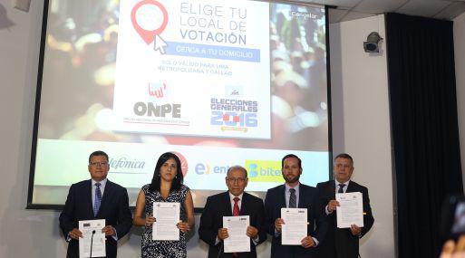 Mediante convenios suscritos con el jefe del organismo electoral, Mariano Cucho, los representantes de dichas empresas se comprometieron a informar a los electores limeños y chalacos mediante un mensaje de texto gratuito sobre el aplicativo Elige tu Local de Votación.