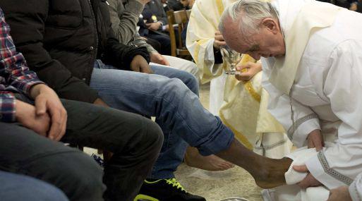 La ceremonia tradicionalmente se ha limitado a los hombres porque según los Evangelios todos los apóstoles de Jesús eran varones. El portavoz del Vaticano dijo que dos de las 12 personas a las que Francisco lavó los pies eran presos musulmanes.