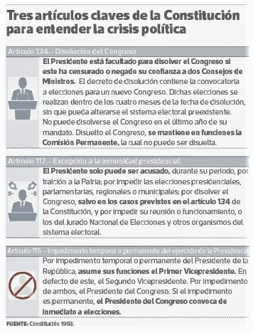 Explicó que el artículo 117 de la Constitución establece que el presidente puede ser procesado cuando disuelve el Congreso por razones distintas al artículo 134 y en este caso se produce esta figura debido a que no hay denegatoria de la cuestión de confianza tácitamente como lo considera el jefe de Estado