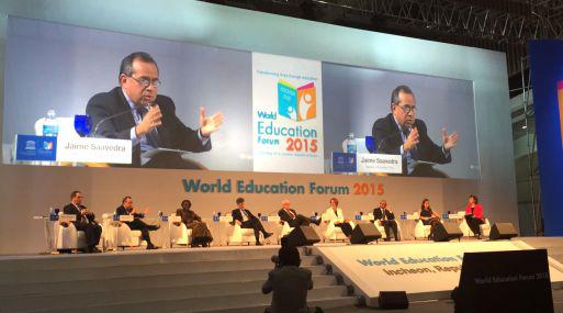 En su intervención ante el Foro Mundial de Educación (FME 2015), que se celebra en Corea del Sur, el ministro de Educación, Jaime Saavedra Chanduví, aseguró que "en el Perú existe la voluntad política de hacer cambios sin precedentes y necesarios para mejorar en materia educativa".