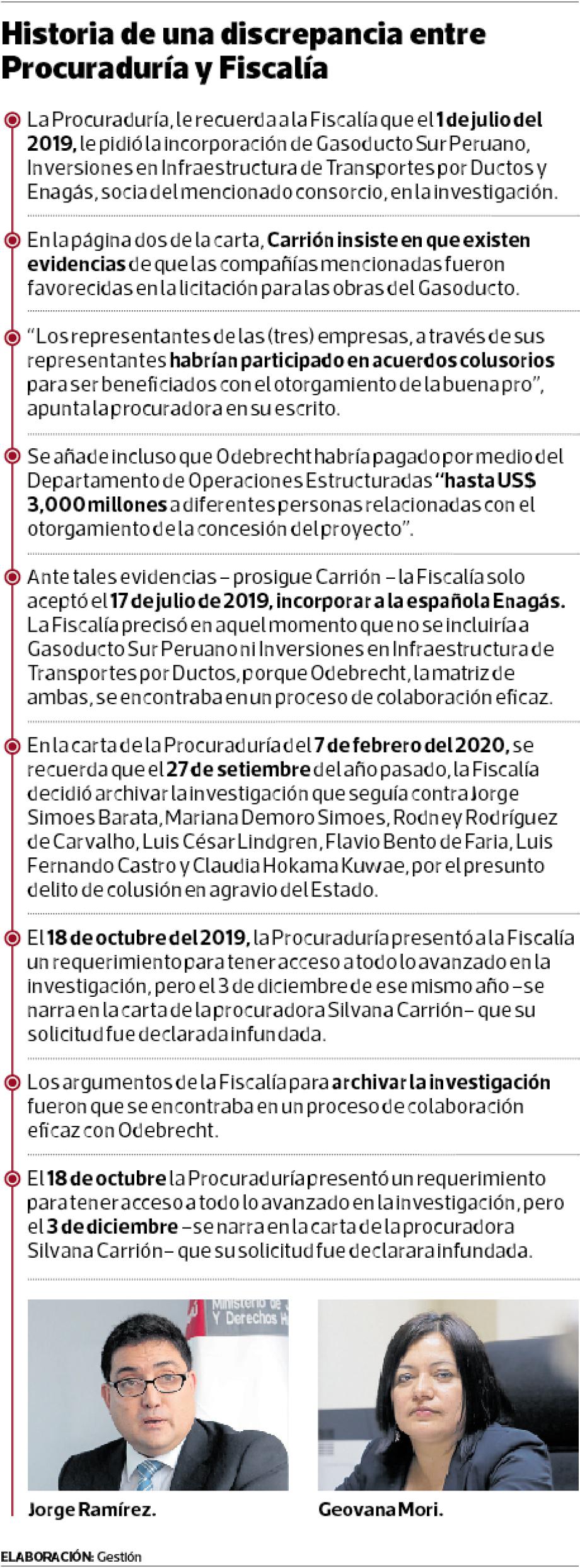 Entre enero y febrero la actuación de la Procuraduría ha tenido giros vertiginosos. En el primer mes del año, el procurador Jorge Ramírez promovió una reunión entre ejecutivos de Odebrecht y el Ministerio de Energía y Minas para que los primeros tengan un estatus sobre el nuevo proyecto del Gasoducto (Gestión 10.02.2020).
