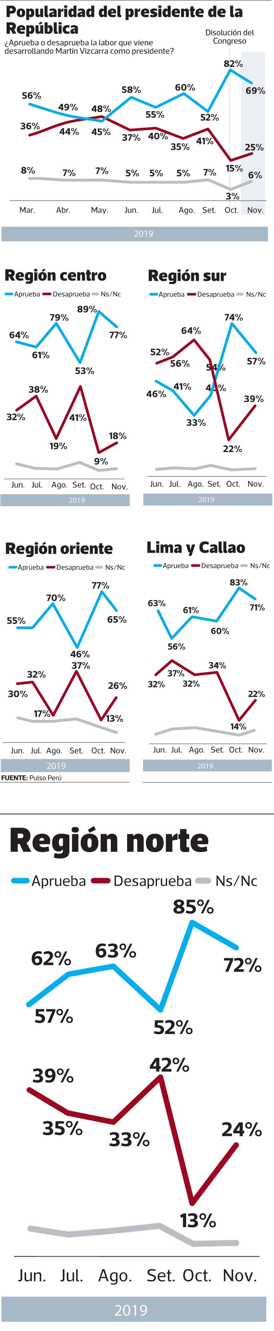 El descenso de Vizcarra también se replica a nivel regional, pues cayó en todas las zonas del país.
