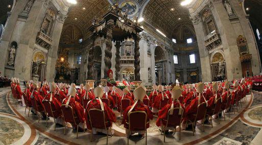 Los cardenales, incluidos los 115 electores menores de 80 años que votarán para elegir el próximo Papa, se dieron cita en la Basílica de San Pedro mientras el coro cantaba en la misa 'Pro eligendo' que precede al cónclave.