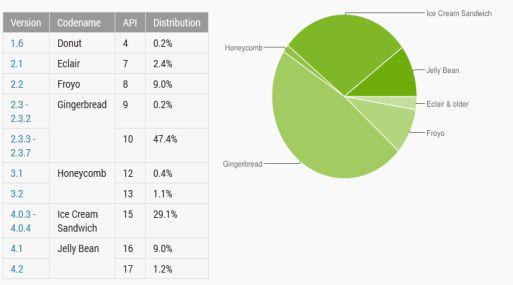 De acuerdo a las propias cifras de Google, Gingerbread, la versión anterior a Honeycomb es el líder indiscutible dentro del mercado de dispositivos móviles con Android, al tener una cuota de 47,4%.