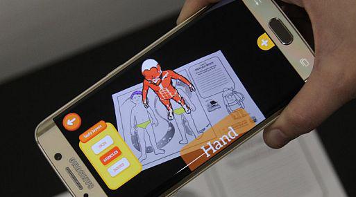 Si se trata de una planta, se la puede cuidar para que crezca y no se marchite; si se trata del cuerpo humano, se puede cambiar para estudiar el esqueleto o los músculos. Cada objeto en 3D aparece pintado como lo hizo el niño.