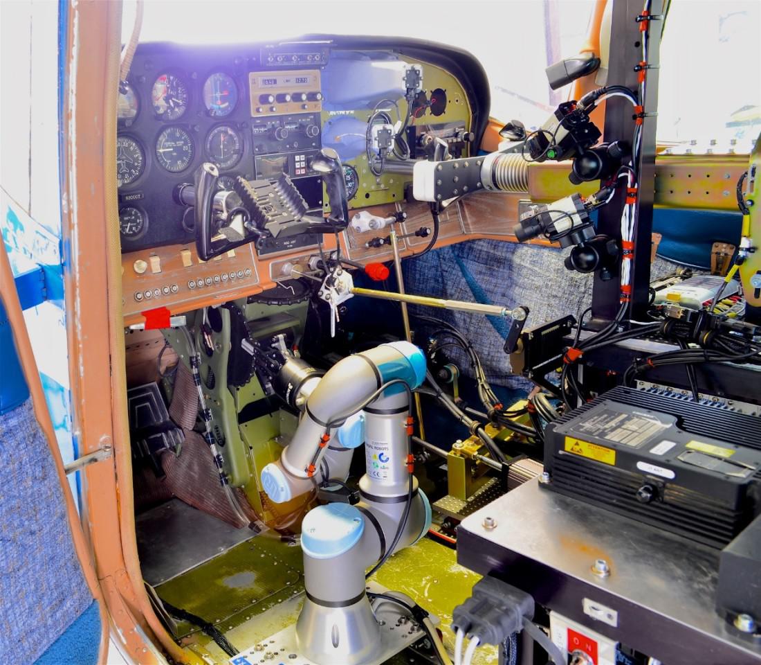 ROBOpilot, en cambio, está diseñado para hacer que estos dos caminos se encuentren en el medio al reemplazar el asiento del piloto (y el piloto) con un kit que consiste en todos los actuadores, dispositivos electrónicos, cámaras y sistemas de energía necesarios para volar un avión convencional, más un brazo robótico para las tareas manuales. De esta manera, ROBOpliot puede operar el timón, los frenos, el acelerador y los interruptores mientras lee los indicadores y pantallas del tablero como un piloto humano.