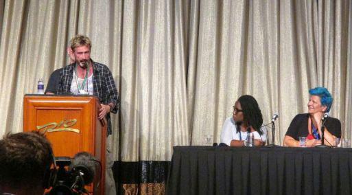 (Reuters).- John McAfee, el extravagante pionero de la industria de software anti-virus, hizo una aparición sorpresa en un congreso de piratas informáticos y desveló un sitio web nuevo donde los usuarios pueden descargar su ira.