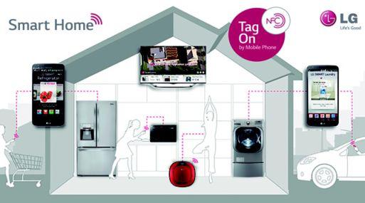 La nueva línea de electrodomésticos inteligentes de LG vienen equipados para funcionar con el Smart Control. Con sólo habilitar la función 'Tag-On NFC' en el smartphone y en uno de los electrodomésticos inteligentes de LG, los clientes pueden controlar remotamente su refrigerador, lavadora, aspiradora u horno microondas.