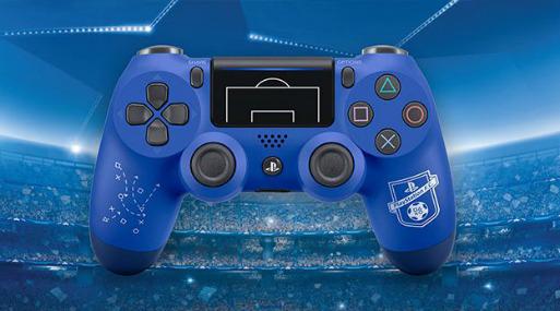 El nuevo gamepad de PS4 es de color azul, e incluye un panel táctil con las líneas del área de penalti, un patrón de tácticas en el grip izquierdo con las míticos iconos de PlayStation, y el escudo oficial de PlayStation F. C.