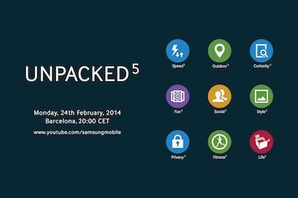 Samsung ha estado brindando información poco a poco acerca del lanzamiento de su nuevo celular, el Galaxy S5. La presentación del telefono se hará en el Mobile World Congress 2014, dentro del evento Unpacked que celebrará el 24 de febrero.