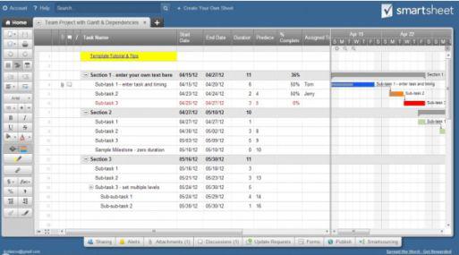 Como una excelente y mejor alternativa al Diagrama de Gantt, con Smartsheet es posible dividir las actividades en fases y asignar fechas límite a cada una de las tareas pendientes.