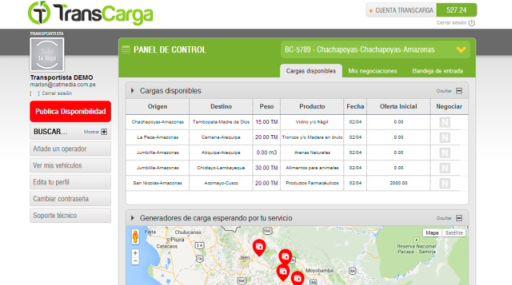 La empresa Transcarga, promovida por Wayra Perú de Telefónica, lanzó su plataforma digital con la que brinda un servicio que permite a los generadores de carga y a los transportistas optimizar sus procesos logísticos, de modo que todas estas empresas tengan la oportunidad de realizar negociaciones en tiempo real y ser atendidas.
