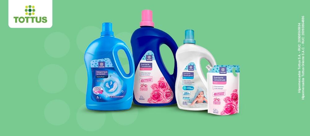 Aprovecha el 25% de dscto. en detergente líquido y suavizante marca Tottus. Para disfrutar de este beneficio, genera tu cupón (aquí) y preséntalo de forma física o virtual en las tiendas. Si te encuentras registrado, y deseas acceder a la promoción, presenta tu DNI en caja.