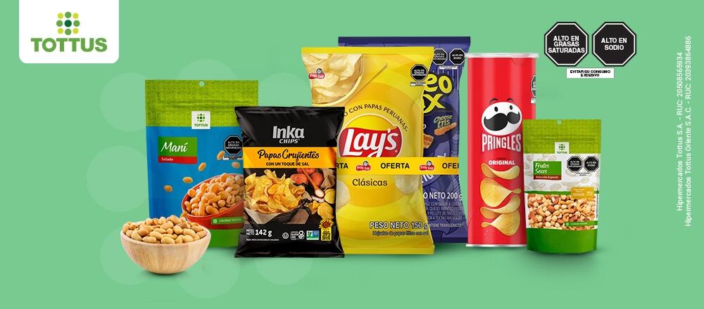 Disfruta de tus piqueos favoritos con el 15% de dscto. en snacks, máximo 6 unidades por compra. Aplica a todas las marcas.
