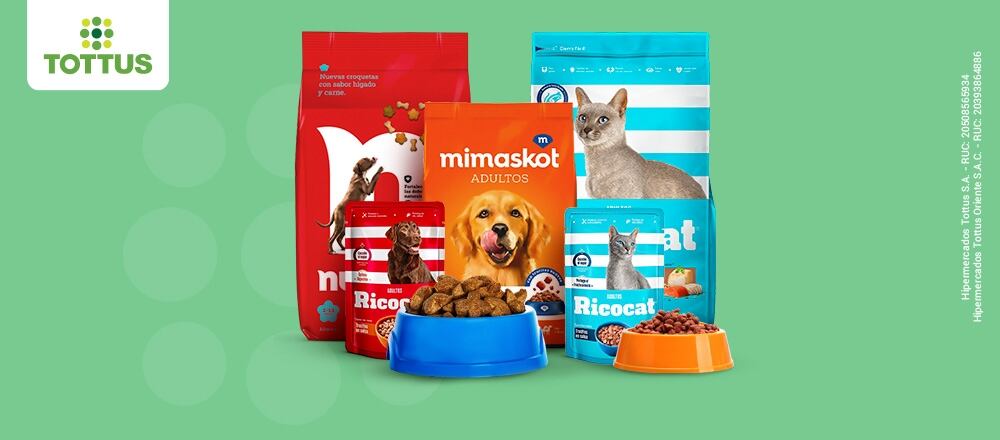 Engríe a los juguetones de la casa. Aprovecha el 10% de dscto. en alimentos para mascotas. Aplica para todas las marcas, máximo 6 unidades por compra.